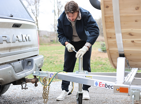 Setup: Quick and seamless, we unhitch the sauna from our truck and leave it ready for you where desired.